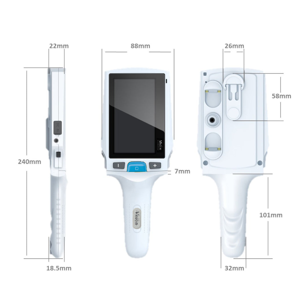 Camβ überzeugt mit hochauflösendem Farbdisplay, einfacher Tastenbedienung und müheloser Bildaufnahme – perfekt für schnelle Prüfungen und Dokumentationen. Ergonomisch gestaltet für Links- und Rechtshänder, liegt sie sicher in der Hand. Ein ausklappbares Bein sorgt bei hoher Vergrößerung für Stabilität und lässt sich bei Bedarf unkompliziert ein- und ausklappen.